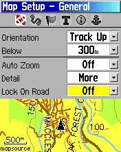 There is another confusing setting, 'Lock on Road' - this is found in the first page of Setup Map. If set to 'On' it won't really do much harm, until you take a short cut across country -