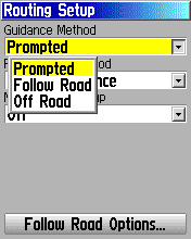 If your GPS does have autorouting capability and suitable maps installed - then I strongly recommend setting both Guidance Method to Prompted and Off Route Recalculation to either Prompted or Off. | |
