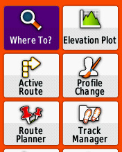 When you start up your new Etrex, it goes to the Main Menu page which looks like this (see left). Unlike the previous Etrex C models, clicking the top right button doesn't change to another page, it just sits there on this Menu page. It's now designated as a back key which gets you back to this point from any other displayed page.