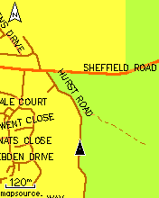 The SMC contours are spaced at 10 metre intervals (similar to OS 1:50,000 maps) and in some hilly places it can all get a bit busy on a tiny 2x1 screen. The installation process described above doesn't include any options for setting the colour, the contours just default to dark single-pixel lines which can get confused with minor roads (see left, NB all these screenshots are much more vivid than the actual GPS display). That is why I've opted to colour the contour lines (see right), to separate them out a bit from the roads and other features even in a zoomed-out view like this. |