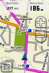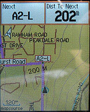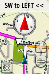 With the very latest Dakota software installed (as I write, v2.41 beta) you could get something like this rather nice combined Route, Map and Compass view (left).