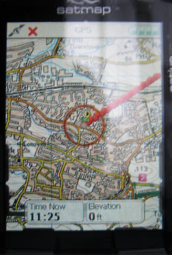The blue circle is an indication of accuracy of position - its a large circle here because I'm looming over the GPS with my camera, and blocking the satellites a bit! | |