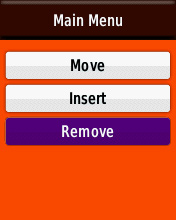 So although the first instinct is to put the 6 most important options at the top of the list, and then the next 6, and so on down the list - it is possible to do a bit better. I decided to first remove one unwanted item from the list of options (this can be done from the same dialog as the 'move' operation) - mainly to give an even number, so that I could arrange two useful options side by side at the bottom of the list. This GPS doesn't have an inbuilt camera, so I don't think I'll be needing the Photo Viewer option!