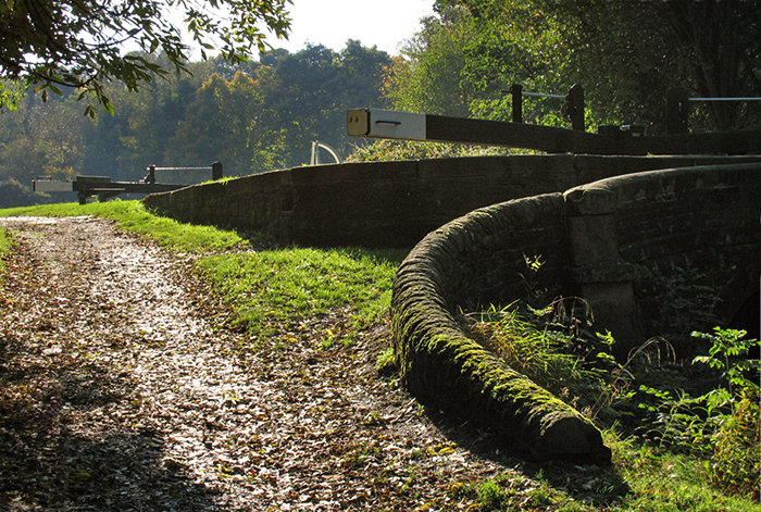 Marple Locks is one of the most scenic lock flights on the UK's historic narrow canal system. ' They have a dramatic, massive feel, being built from large gritstone blocks, rather than the brickwork usually found on the other major flights. Close-packed, 16 locks in about a mile, they are steep too, with the deepest chambers (12 ft) of any narrow lock flight. There's a lot of variety, from the brooding tree-lined bottom section, to the parkland of the middle section, and the top four locks with their sideponds crammed close together near the town centre.