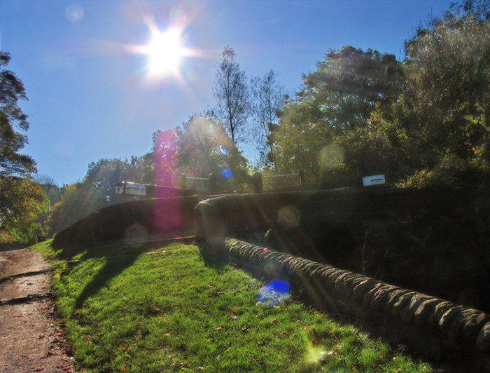 Marple Locks is one of the most scenic lock flights on the UK's historic narrow canal system. ' They have a dramatic, massive feel, being built from large gritstone blocks, rather than the brickwork usually found on the other major flights. Close-packed, 16 locks in about a mile, they are steep too, with the deepest chambers (12 ft) of any narrow lock flight. There's a lot of variety, from the brooding tree-lined bottom section, to the parkland of the middle section, and the top four locks with their sideponds crammed close together near the town centre.