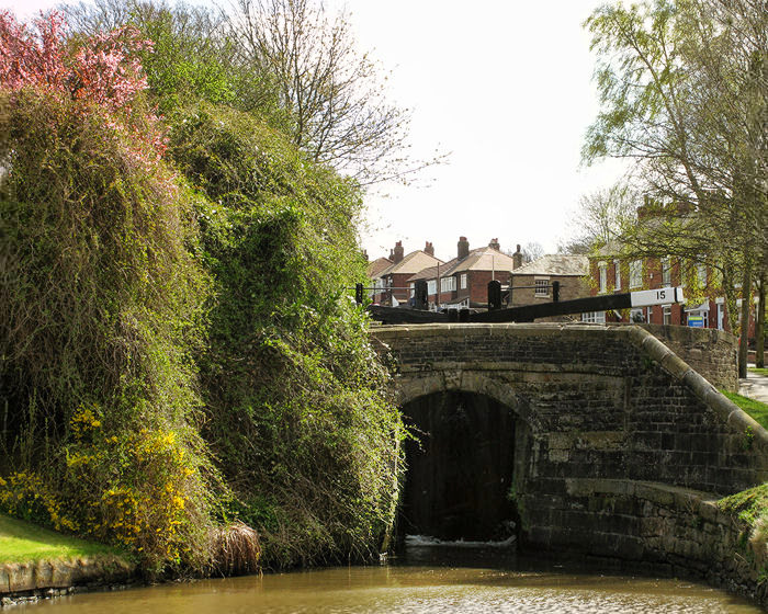 Marple Locks is one of the most scenic lock flights on the UK's historic narrow canal system. ' They have a dramatic, massive feel, being built from large gritstone blocks, rather than the brickwork usually found on the other major flights. Close-packed, 16 locks in about a mile, they are steep too, with the deepest chambers (12 ft) of any narrow lock flight. There's a lot of variety, from the brooding tree-lined bottom section, to the parkland of the middle section, and the top four locks with their sideponds crammed close together near the town centre.